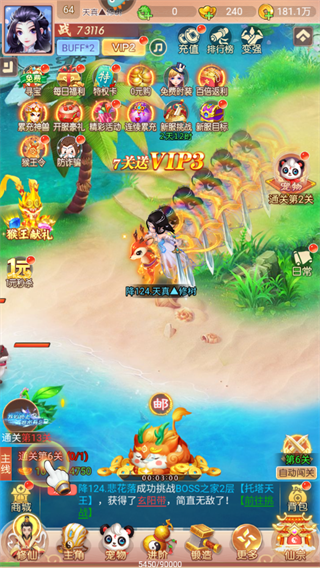 2、探索广阔仙域世界,参与无尽竞技挑战,在修仙旅程中体验多元化的PVP与PVE玩法;