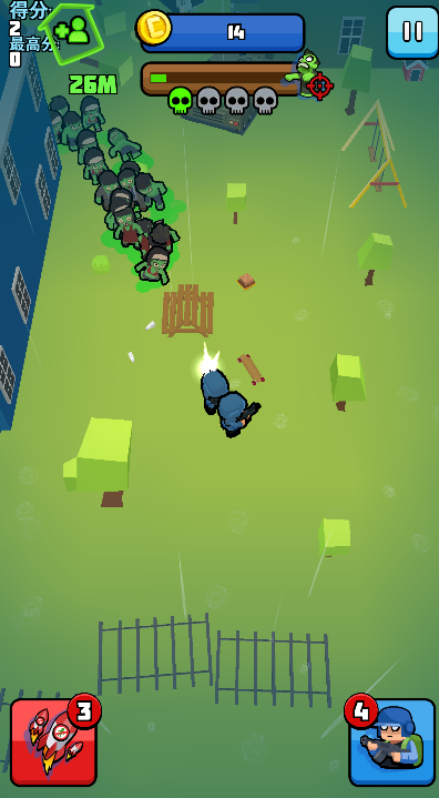 2、进入游戏后,只需操控角色移动,系统会在射程范围内自动对僵尸进行射击。