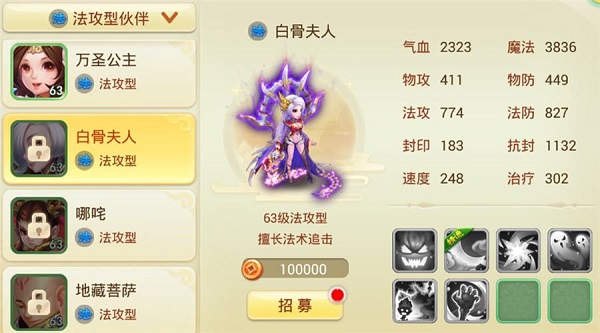 输出型伙伴的选择则更具灵活性:追求爆发可选孙悟空、紫霞;需要龟速守尸可用地藏菩萨;若倾向智能点杀,则白骨夫人是不错之选。建议多查看技能说明,根据自身战术需求灵活搭配。