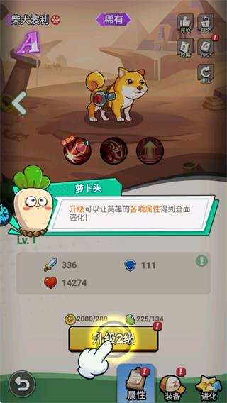 可通过消耗资源升级,升级能全面强化英雄各项属性。