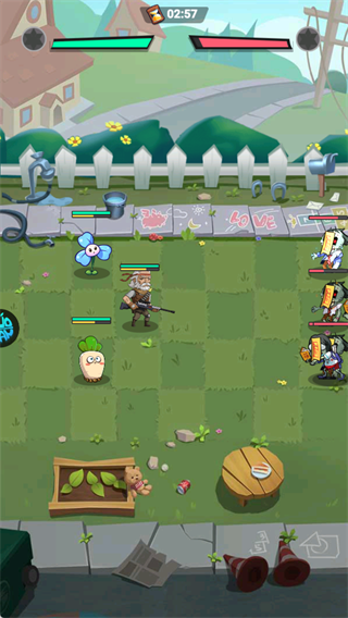 采用格子布阵,左侧为己方英雄,右侧为敌方僵尸,需在限时内击败对手。