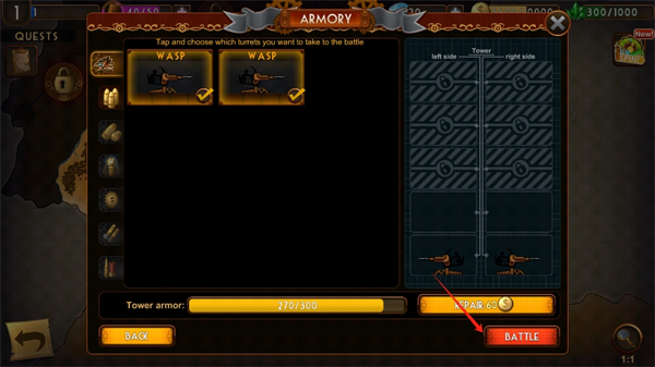 - 完成防御塔部署后,点击【BATTLE】开始战斗。