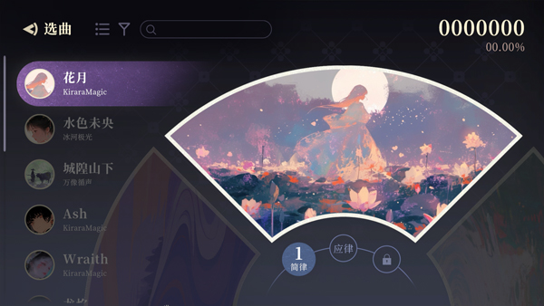 万华律是一款以国风音乐为核心的新概念二次元音游,摒弃传统下落式判定线,采用“全屏散落谱面”机制,音符随机分布于屏幕各处,玩家需在判定消失前精准点击。游戏提供简律、应律、神律三种难度,判定细致,精准度越高得分越高。