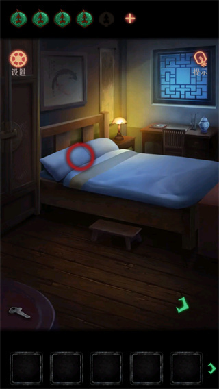 2、点击床上的枕头,获得一把钥匙;