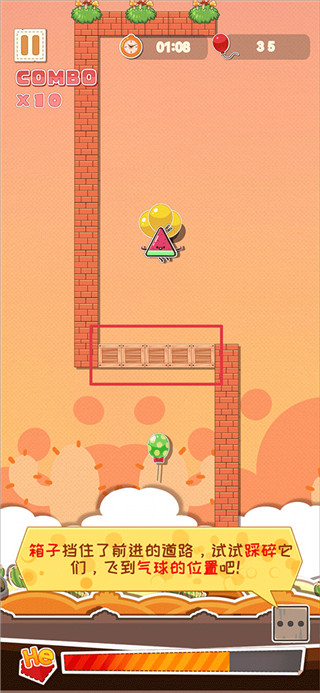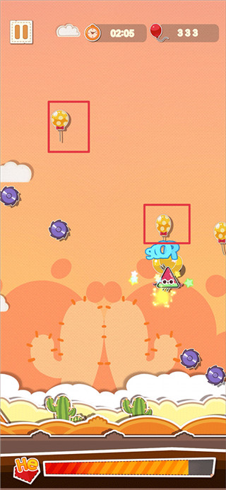 4、当途中出现怪物时,试着踩碎怪物头顶上的气球,可以将怪物击败