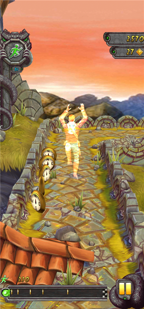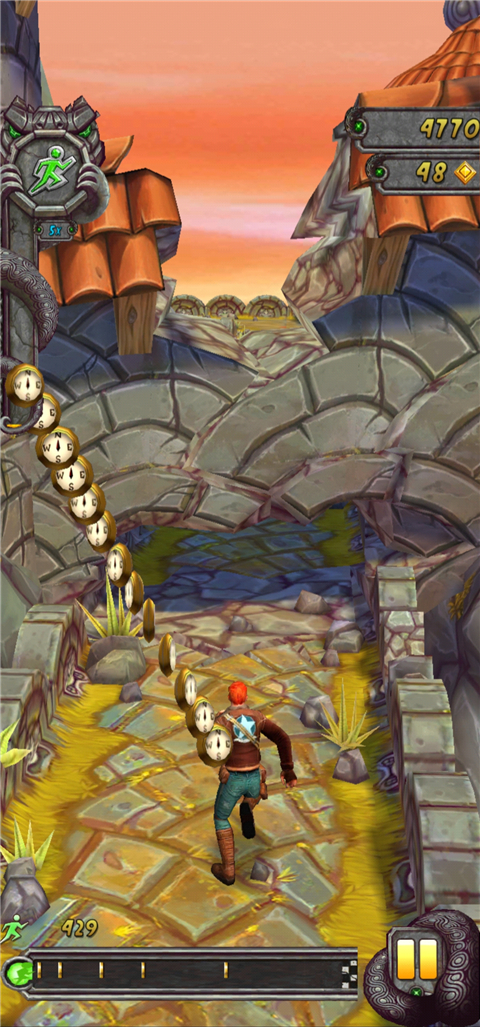 第二种:第二种方法并没有提到需不需加速道具,只是说在遇到悬崖时,玩家可以直接跳下去,但是在跳下去的同时手机要倾斜一下,这样也有几率可以触发这个Temple run2 Bug。