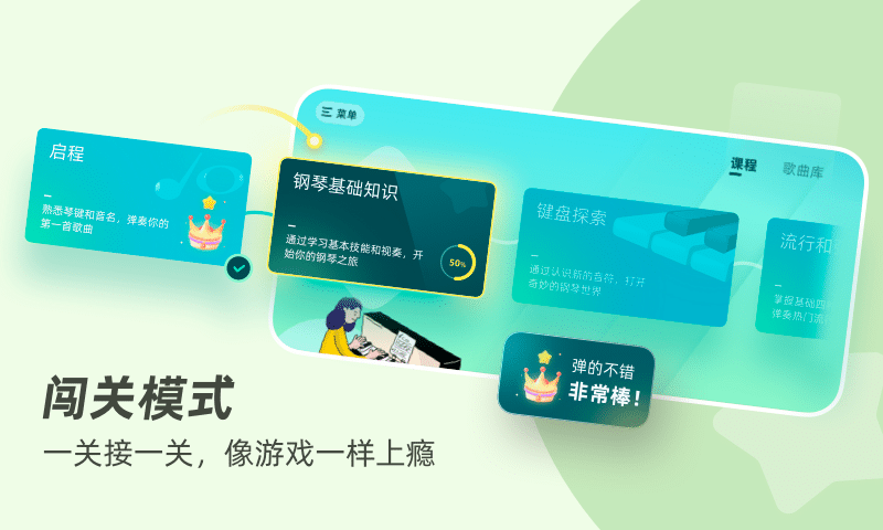 3、覆盖从初级到高级,从古典韵味到流行风尚,让你可根据个人的喜好挑选曲目。