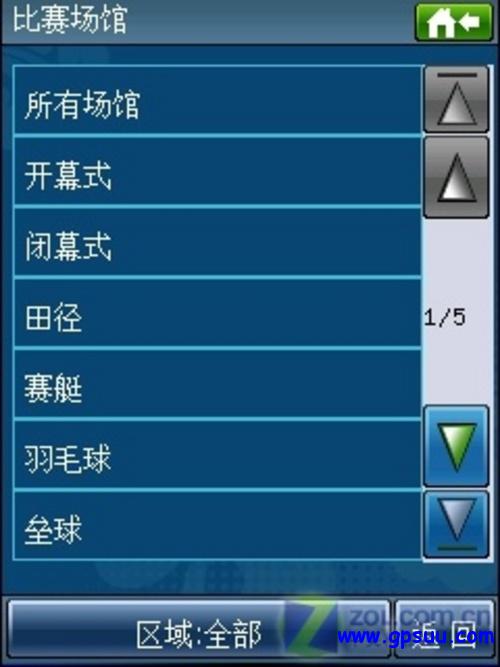 进入到天行者2008的主菜单后,我们看到在菜单中有一个很明显的“体育专题”图标。在这个专题里就包含着奥运场馆等信息。
