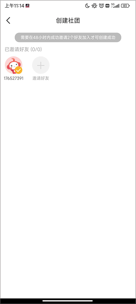 3、提交申请后,需在48小时内成功邀请至少两名成员加入该社团,方可完成创建流程。