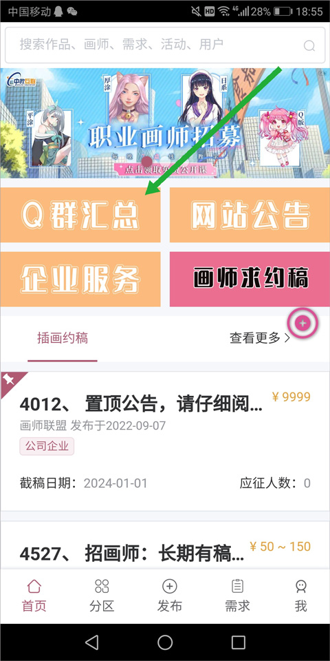 3、约稿对接:通过分类标签、能力分级与禁言机制,打造免费、透明、高效的约稿通道,持续汇集插画、头像、立绘、同人周边等多元需求;