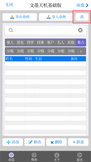 2、在命例列表中,点击【我】以进入个人命盘设置界面。