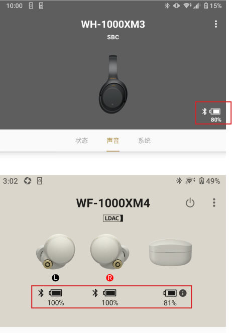 应用主界面清晰显示当前已连接的Sony耳机型号及其剩余电量,便于用户随时掌握设备状态。