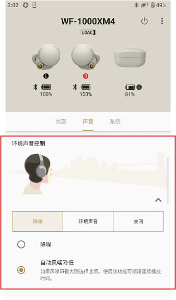 在户外风噪较大的环境中,用户可开启“自动风噪降低模式”,耳机会自动检测并有效抑制风噪干扰,提升通话与聆听清晰度。