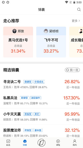 3、锦囊观摩:每位投资顾问和炒股达人均拥有独特的选股策略、择时方法与风控技巧。通过“锦囊”功能,普通用户可同步观察其操作过程,在实战中学习如何从容应对瞬息万变的市场环境。