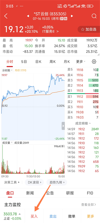 5、选中目标股票后,点击“买入”按钮即可开始交易操作。
