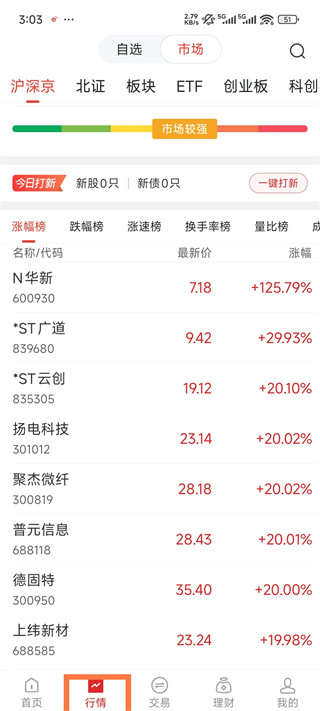 4、开户成功后,即可进入“行情”页面查看您关注的个股信息。