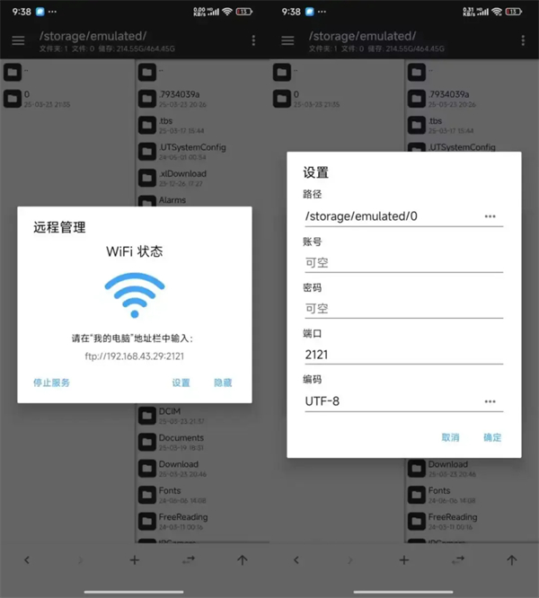 支持共享手机文件,可在电脑上通过局域网的IP地址访问手机上的文件。