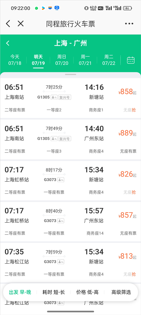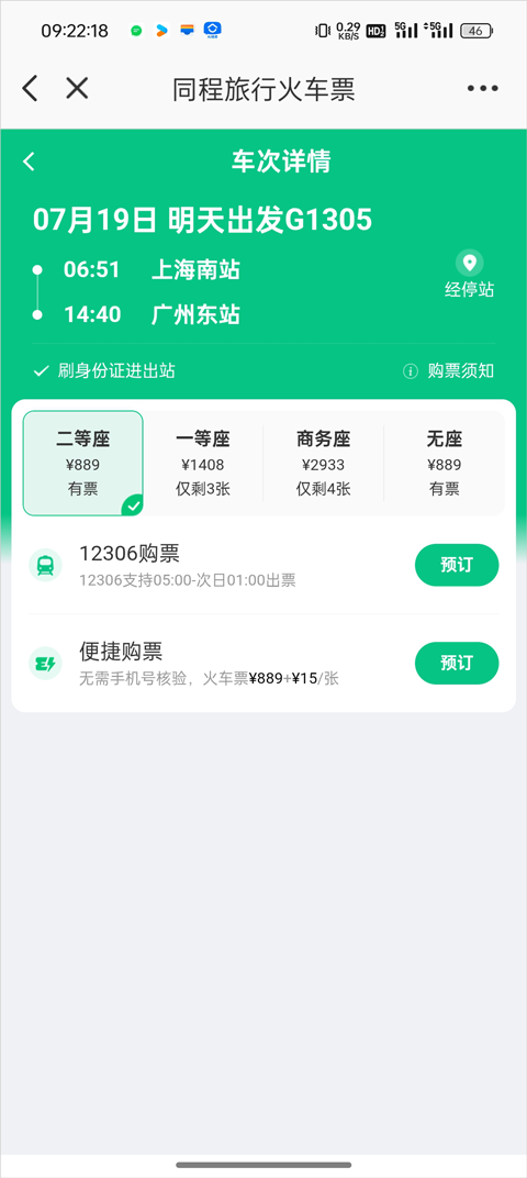 5、在查询结果中选择合适的车次,进入预订页面。