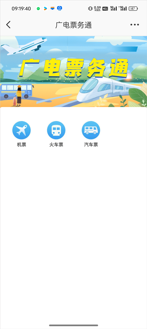 3、进入广电票务通后,点击“火车票”选项。