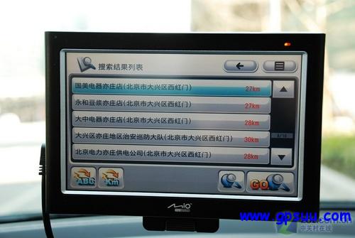 Mio C725的手写识别较准确,在笔画较潦草的情况下也会在备选字表中显示准备输入的字。输入“亦庄”后点击“确定”,计算时间没有超过2秒即得出候选地点列表。