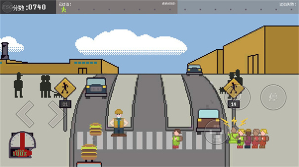 1、游戏核心为护送小朋友过马路,无红绿灯,车辆不停。