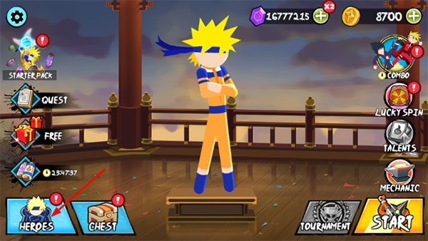1、启动游戏后,点击左下角的“Heroes”按钮进入角色界面;