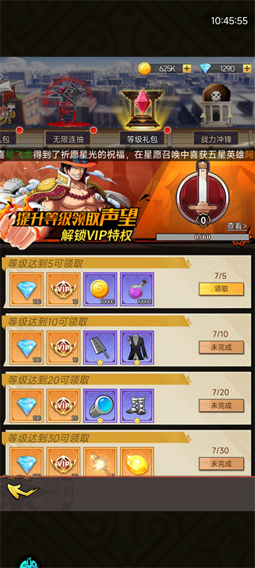 角色升级即送钻石、VIP声望及装备强化材料,助力快速解锁VIP特权,成长之路畅通无阻!