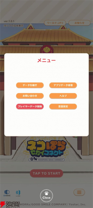 6、若希望重新创建初始角色,请返回标题画面,选择“删除玩家数据”。