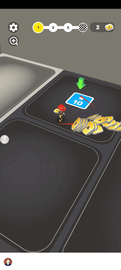 1、进入游戏后,首先拖动角色移动,捡拾地面上散落的金币。收集完毕后,控制角色走到绿色箭头下方,即可进入第二关。