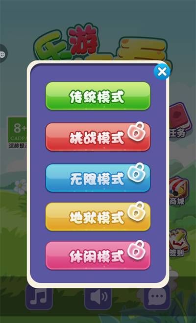 游戏主界面共分为五个板块:传统模式、挑战模式、无限模式、抵御模式以及休闲模式。需要注意的是,只有成功通关传统模式中的5个以上关卡后,才能解锁其他模式。