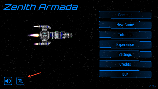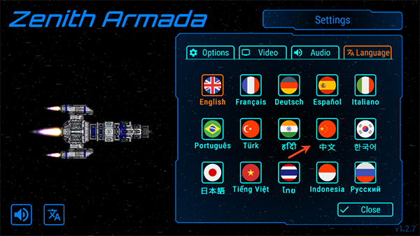 1、进入《天际舰队》游戏后,首先点击左下角的“语言”选项。