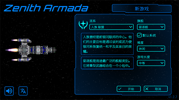 3、完成语言设置后,返回主界面并点击“新游戏”按钮,开始你的星际征程。