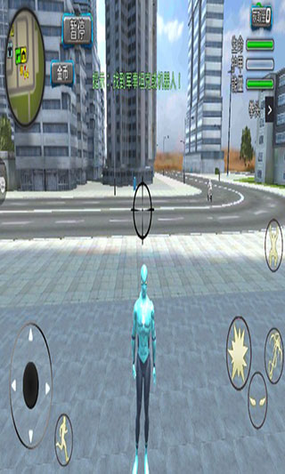 3、方向键旁为奔跑键,点击后可让角色加速奔跑,快速穿越城市街区。