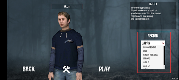 4、在右侧“Region”区域中,选择延迟较低的服务器地区以确保流畅联机体验。