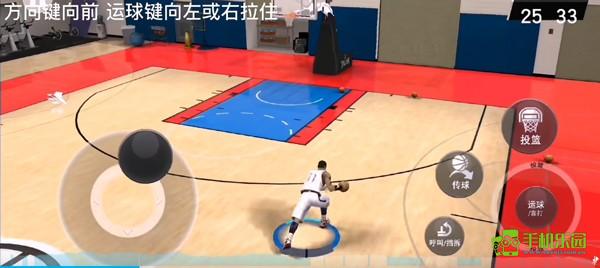 3、跳步:方向键向前推动,同时将运球键向左或向右拉住。