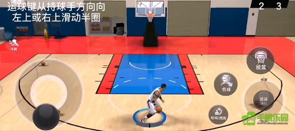 7、半转身:从持球手方向开始,将运球键向左上或右上滑动半圈即可完成动作。