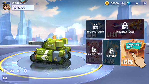 1、点击试炼模式【通关试炼3-2解锁军团、通关试炼3-3解锁比拼、通关试炼2-3解锁组队、第3天解锁对战等一系列模式】