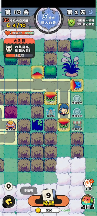 7、冒险前期如果打不过,白天踩空地,晚上拿资源。能苟就苟,流派升星、技能成型后就简单了。